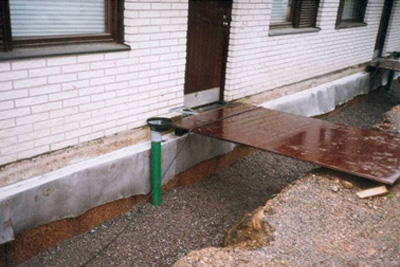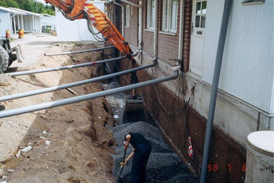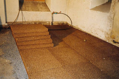 Lattian lämmöneristys ja kapillaarikatko. Piispantalo, Turku.